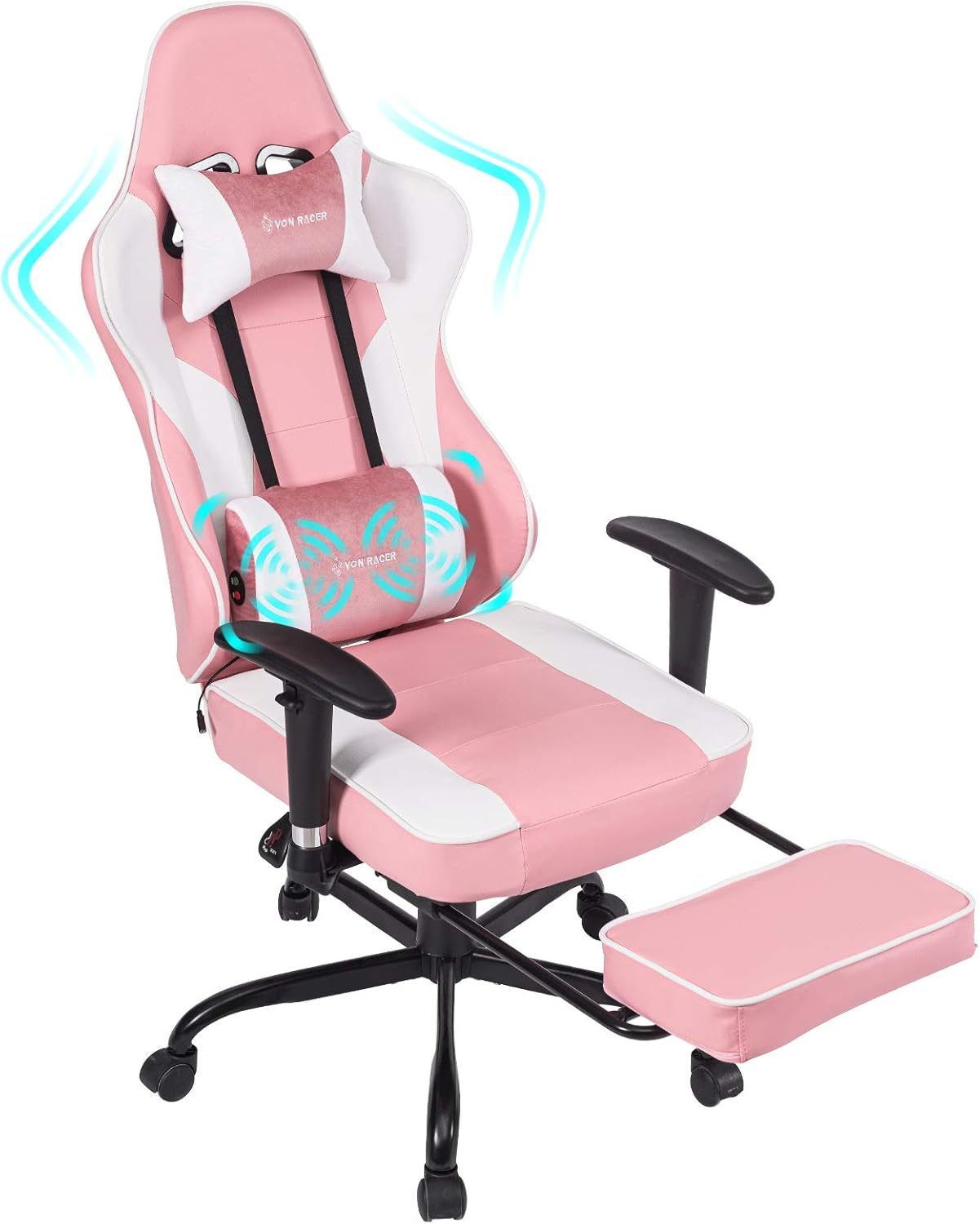 Von Racer Massage Gaming Chair Video Racing Computer Chair Adjustable Massage Lumbar Cushion Retractable Footrest And Arms High Back Ergonomic Leather Office Desk Chair Pink White Pricepulse